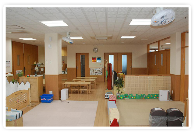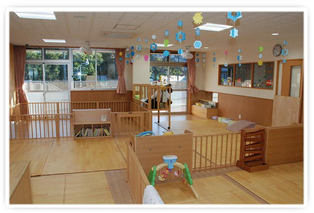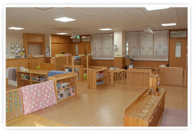 平成28年に園舎建て替えを行い、子どもたちにとって、 安全で快適な環境を整えました。(保育室の面積に余裕があるだけでなく、保育室・子育て相談室には床暖房を設置しています。)また、子どもたちにとっても、保護者の皆様にとっても、保育園を利用するすべての方が、気持ちよく過ごせるように、日ごろから整理整頓を心がけ、清潔な環境を確保しています。